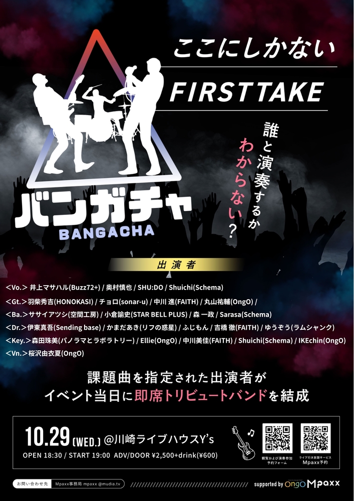 バンガチャ初出場! SCHEDULE 2025/10/29(水) 19:00 - 川崎ライブハウスY's 10月29日川崎ライブY's Shuichiはボーカルとピアノで Sarasaはベースでバンガチャに初出陣します! ※バンガチャ お題となってる楽曲をその場でバンドを組んで演奏するという とんでもない面白い企画(笑) 10代の2名は大丈夫なのか!!!!!!? STAFFとても心配しております(笑) もし応援にかけつける事が可能なSchemarのみなさまはご連絡くださるとありがたいです! URLをコピーする 報告する